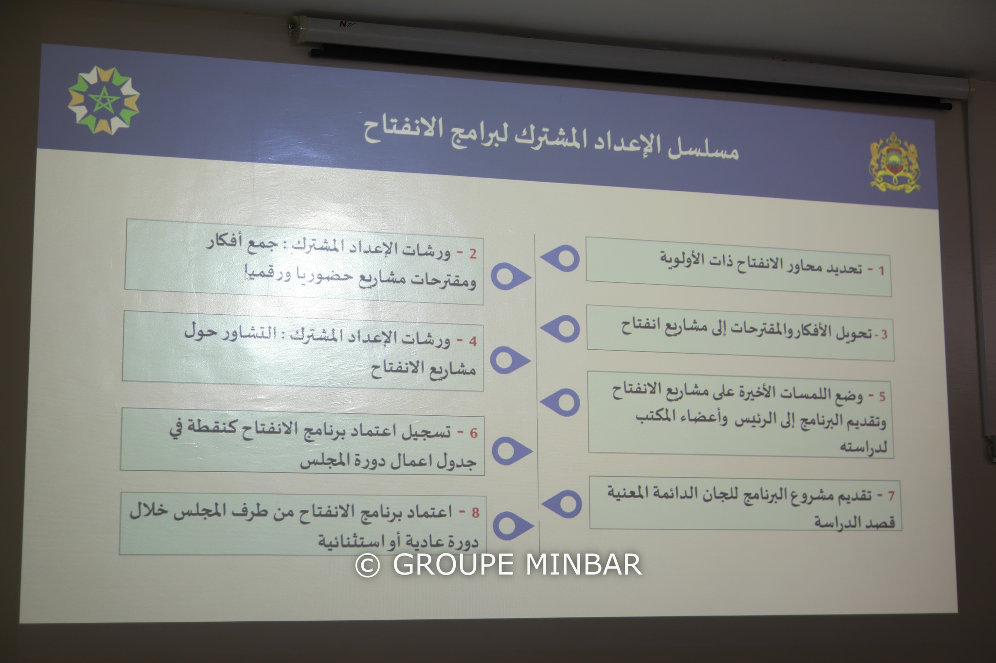في إطار برنامج دعم الجماعات الترابية المنفتحة الذي يتم تنفيذه تحت إشراف المديرية العامة للجماعات الترابية بوزارة الداخلية، وبشراكة مع جمعية جهات المغرب وجمعية إمباكت للتنمية، بهدف مأسسة مبادئ الانفتاح من أجل تنمية ترابية منفتحة، وتعزيز الديمقراطية التشاركية والمشاركة المواطنة، وفي إطار الإعداد المشترك لبرنامج انفتاح مجلس إقليم الصويرة الذي سيُعقد يوم الثلاثاء 25 مارس 2025، والذي سيُنظم من طرف مجلس الإقليم، تم اليوم الأربعاء 12 مارس 2025 تنظيم لقاء تواصلي تم خلاله تشكيل لجنة لإعداد وتنفيذ وتتبع برنامج انفتاح الإقليم. تكونت اللجنة من رؤساء اللجان الدائمة للمجلس، ورؤساء المصالح الإدارية للمجلس، والمدير العام للمصالح، ونقطة الارتكاز. وقد قامت اللجنة بتحديد المحاور ذات الأولوية التي سيتم العمل عليها في ورشة الإعداد المشترك الأولى، والتي تمثلت في المحاور التالية:
