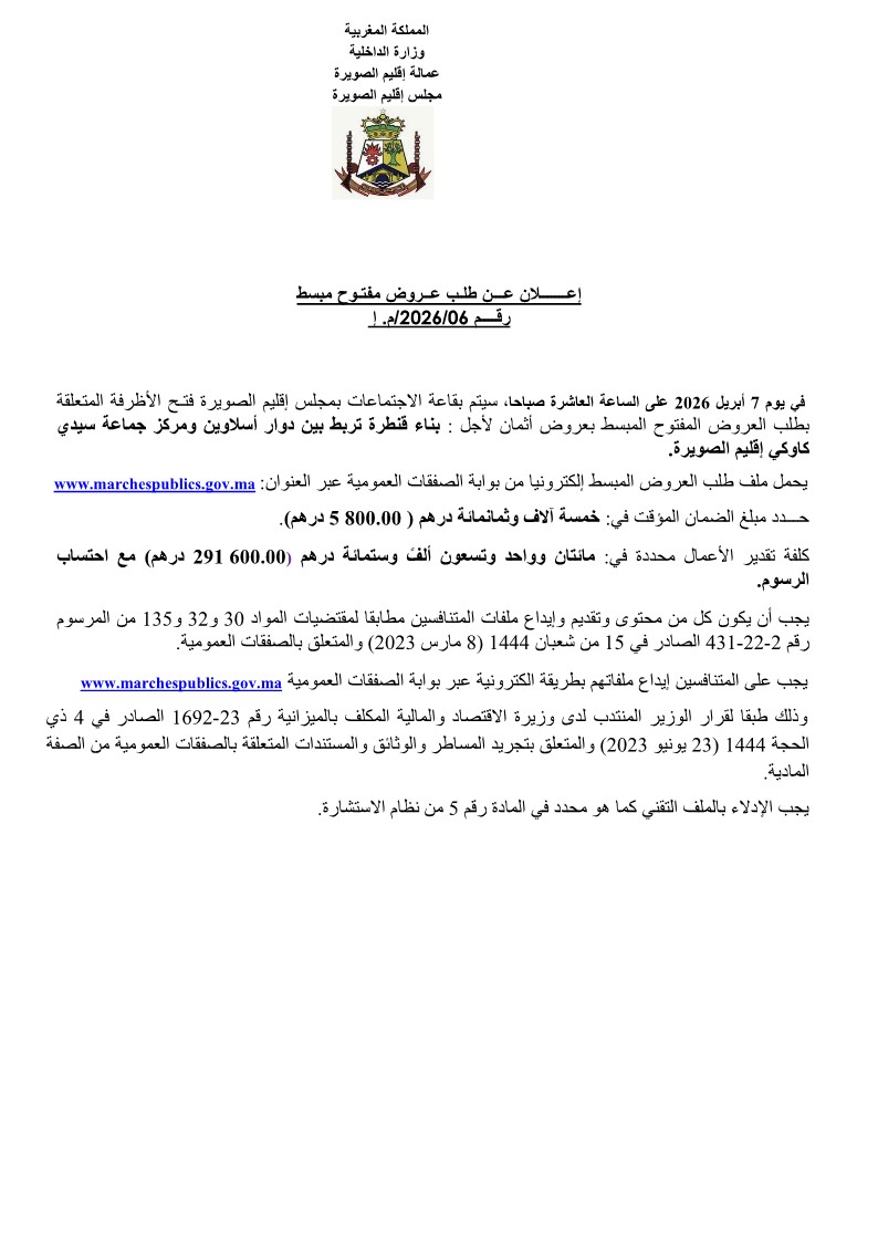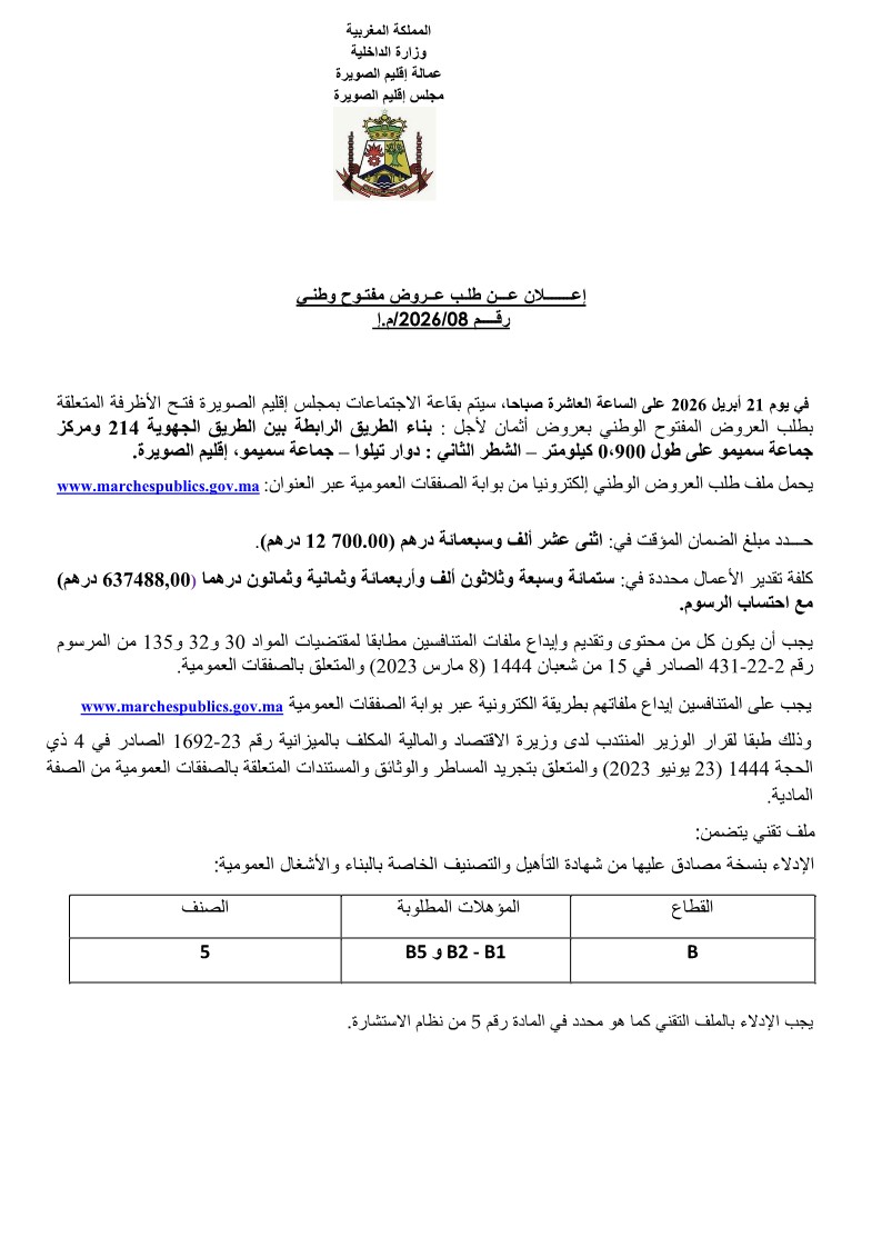 وتتعلق النقطة الملغاة بمشروع بناء الطريق الرابطة بين الطريق الإقليمية رقم 2209 ودوار الشبابطة، التابعة لـ جماعة حد الدرا، على طول يناهز 1.300 كيلومتر، حيث تم إلغاؤها وفق المقتضيات القانونية الجاري بها العمل.